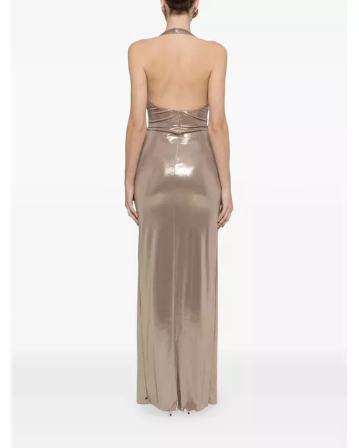 gold-tone twisted detail deep V-neck backless front split