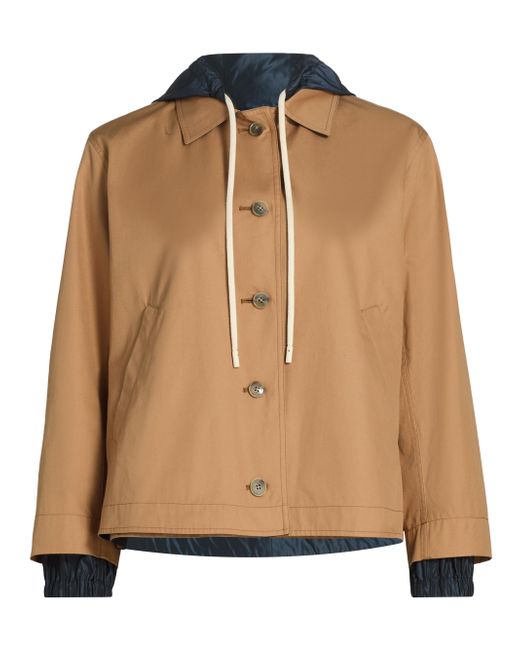 The Cotton & Techno Taffeta jacket from Herno is a versatile piece that features a reversible design and functional drawstring hood. Drawstring hood Long sleeves Side-welt pockets Button-front closure 100% cotton Combo: 100% polyetser Dry clean Imported SIZE & FIT Model measurements: 5'10" tall Model is wearing a US size 4. Outerwear And Swimwear - Down > Herno > Saks Fifth Avenue. Herno. Color: Camel. Size: 0.