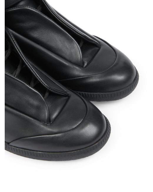 Made in Italy, the Future sneakers from Maison Margiela are crafted of leather, featuring a seamless design and a concealed lace-up fastening. Round toe Lace-up style Grip tape Calf leather upper Lining: calf leather Rubber sole Made in Italy. Men's Shoes - Mens Designer Shoes > Maison Margiela > Saks Fifth Avenue. Maison Margiela. Color: Black. Size: 7.