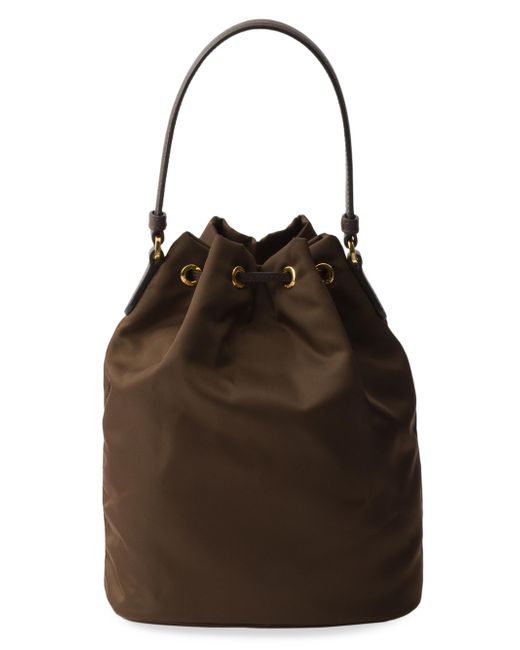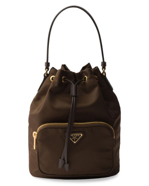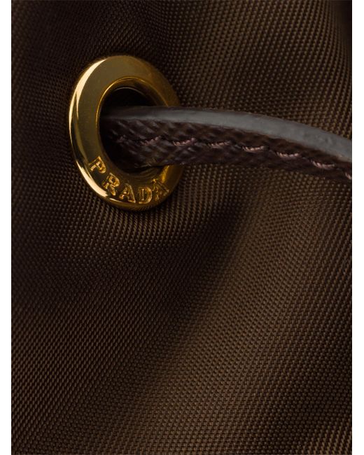 Leather handle Detachable, adjustable leather shoulder strap Zipper pocket Metal hardware Enameled metal triangle logo on pocket Drawstring closure Logo-print Re-Nylon interior 100% Polyamide Imported 6.8'' W x 8.8'' H x 4.7'' L. Lsd Handbags - Prada Handbags Access > Prada > Saks Fifth Avenue. Prada. Color: Dark Brown.