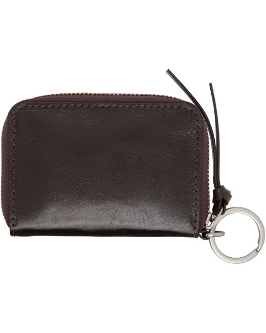 Buffed calfskin wallet. · Logo embossed at face · Keyring at side · Zip closure · Central card compartment · Two patch pockets · H3 x W4 Supplier color: Dark Grey