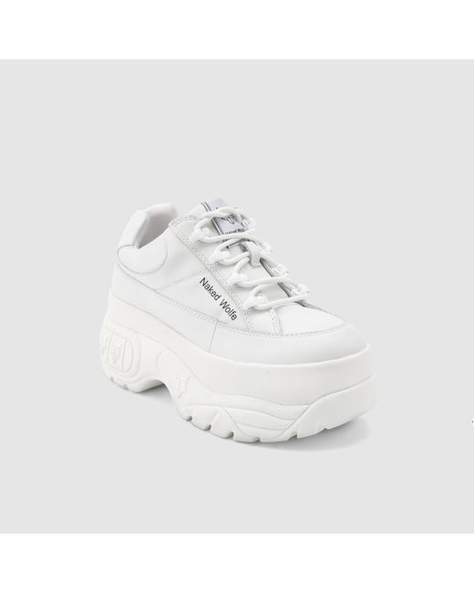 Product Description 90's inspired platform chunky lace up sneaker featuring the Naked Wolfe Rubber Wolfe head plaque and side branding. Features Hand-Made 100% Leather Upper 100% Leather Insole Sock 7cm Chunky Platform Sneaker Sole Fits True To Size, Half Sizes Recommended To Go Up To Nearest Full Size.