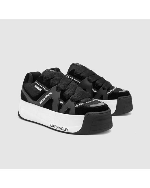 Product Description The skate sneaker makes a return, bigger and better than ever. Slide is the remix of icon style Skate. Made from a mix of leather, suede and mesh upper featuring barbed wire tape, moulded 3D rubber side panel moulds. Skater features a 3D bubble "Wolfe Head" Plaque on the heel. Slide has two pairs of extra thick 90's inspired custom designed shoe laces. Features Leather/Suede and Mesh Upper 100% Leather Insole Sock 5cm One of a Kind Platform Skate Outsole Two pairs of laces, self-matching and colour contrast
