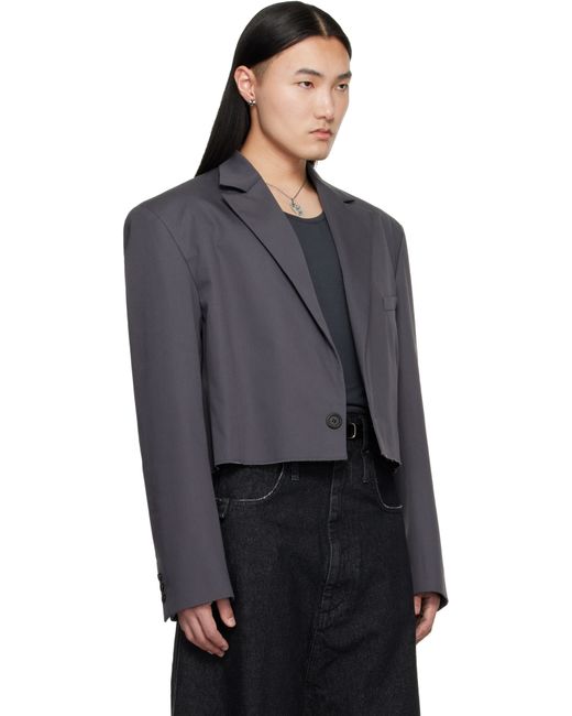 Cotton-blend twill blazer. · Peaked lapel · Single-button closure · Welt pocket at chest · Darts at waist · Raw edge at cropped hem · Buttoned surgeon's cuffs · Central seam at back · Welt pocket and logo patch at interior · Patterned satin lining Supplier color: Slate Grey