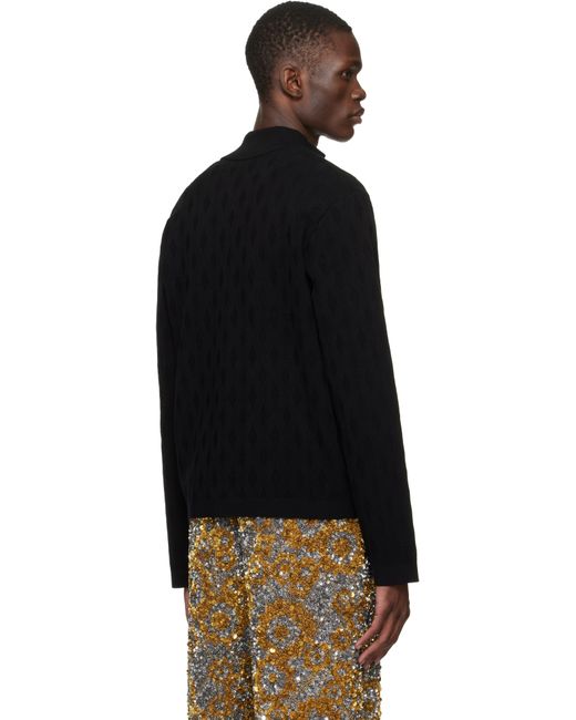 Knit viscose-blend sweater. · Jacquard argyle pattern throughout · Rib-knit stand collar, hem, and cuffs · Two-way zip closure · Welt pockets at front Supplier color: Black