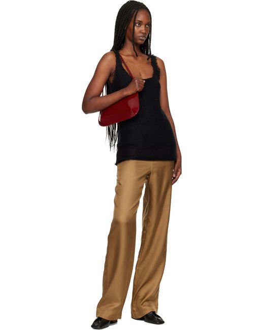 Patent calfskin shoulder bag. · Fixed shoulder strap · Darts at base · Magnetic closure · Patch pocket at interior · Twill lining · H6.5 x W11 x D2.25 Supplier color: Lipstick Patent Leather
