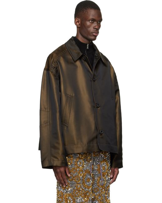 Viscose-blend satin jacket. · Spread collar · Button closure · Welt pockets · Dropped shoulders · Patch pocket at interior Supplier color: Bronze