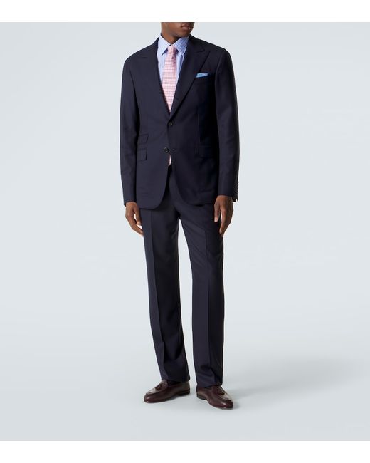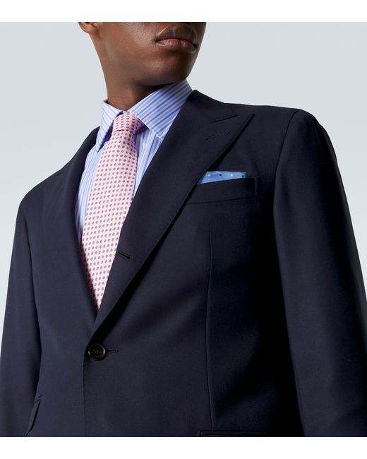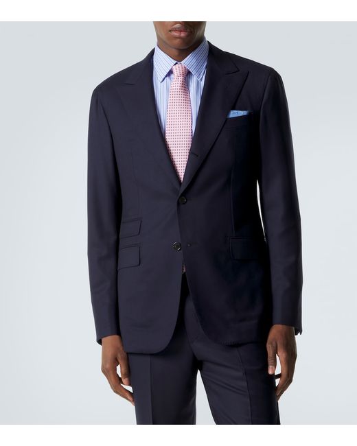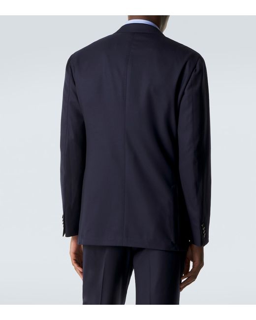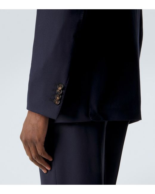 Material: 100% wool. Care instructions: dry clean. Made in Italy. Designer color name: House Navy. Lining: 100% cupro. Pocket lining: 100% cotton. Contains non-textile parts of animal origin. Wool. Peak lapel. Cuff: four buttons. Pockets: breast pocket, flap pockets, internal pockets. Closure: single-breasted (two buttons). Vent: double.