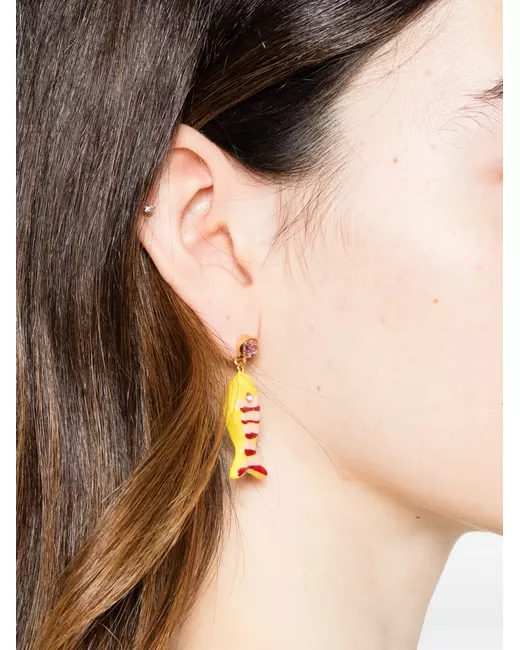 gold-tone and yellow ruby embellishments drop design stripe detail fish design post-back fastening These earrings come as a pair.