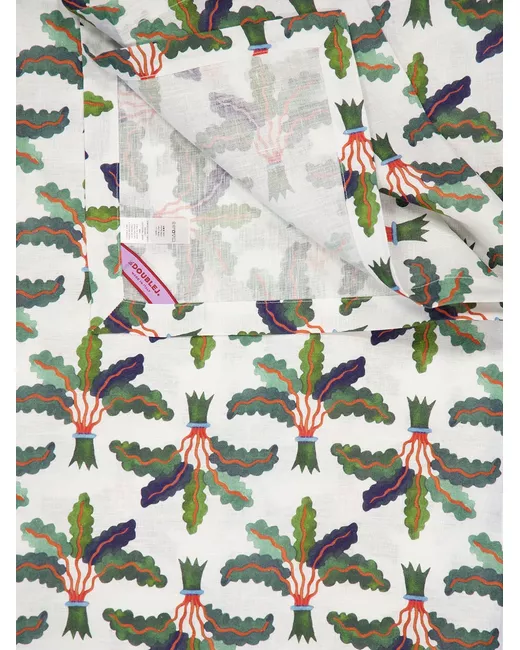 white palms print linen
