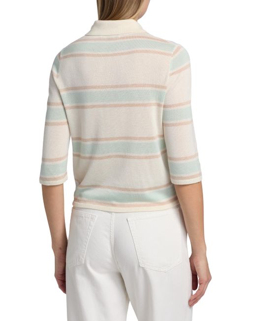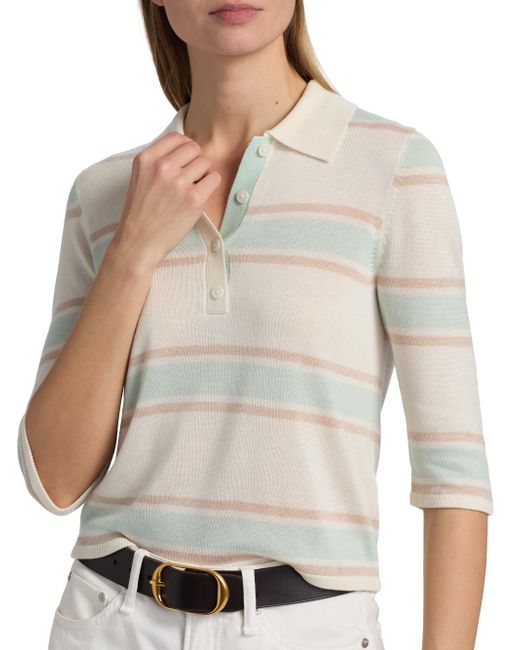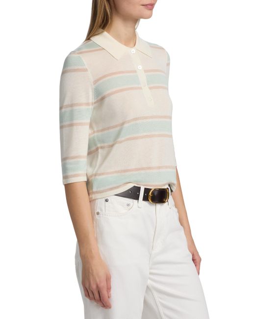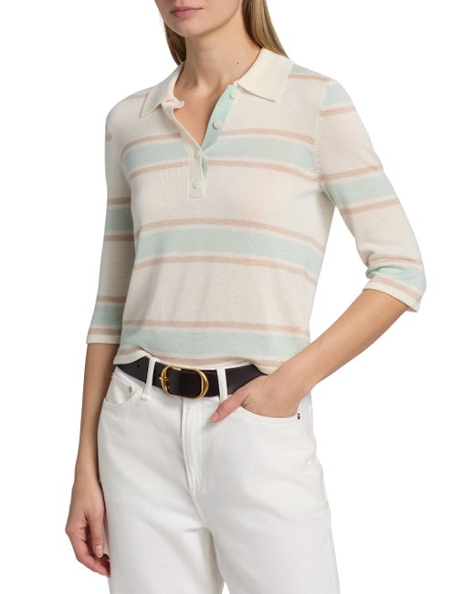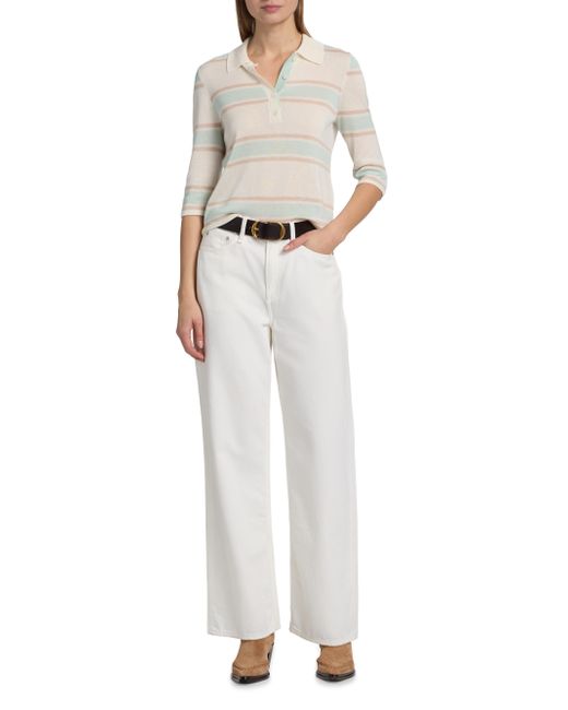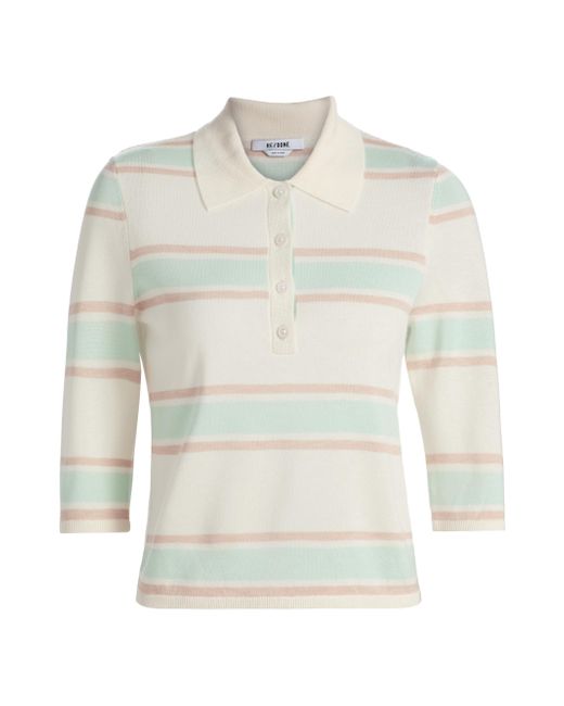 Designed with a relaxed yet streamlined silhouette, Re/done's Range polo top features a horizontal stripe and a touch of cashmere. The loose-slim fit skims the figure without feeling too oversized. Spread collar Three-quarter length sleeves Button-front closure 85% tencel/15% cashmere Hand wash Imported SIZE & FIT This style is designed for a relaxed fit About 20.5" from shoulder to hem Model measurements: 5'10" tall Model is wearing a US size Small. Contemporary Sportswear - Denim And Bottoms > Re/done > Saks Fifth Avenue. Re/done. Color: Light Mint Combo. Size: XS.