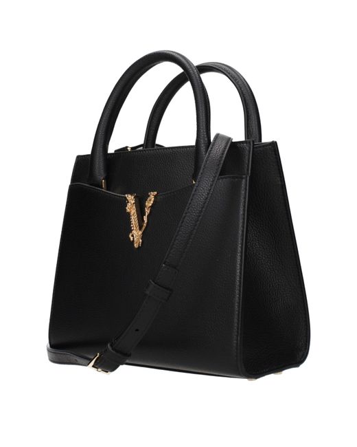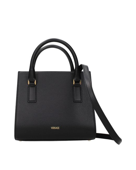 Description: The product with MPN 10059601A040931B00V and code F86327 leather in black is a handbags designed by Versace. It has features like front logo, back logo, adjustable shoulder, removable shoulder.