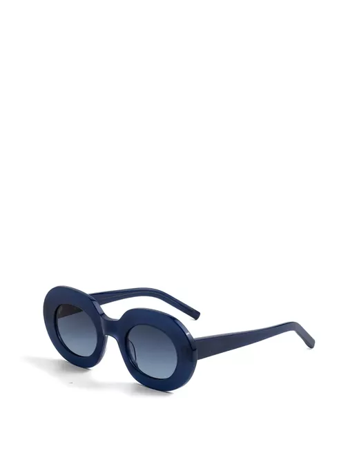 dark blue oval frame gradient lenses nose pads These glasses come with a protective case.
