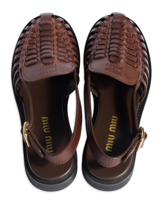 Upper with woven leather details Leather lining Heel height: 20 mm Leather insole TPU sole Logo embossed on the upper and screen-printed on the insole 100% Calf leather Imported. Lsd Handbags - Miu Miu > Miu Miu > Saks Fifth Avenue. Miu Miu. Color: Brown. Size: 6.