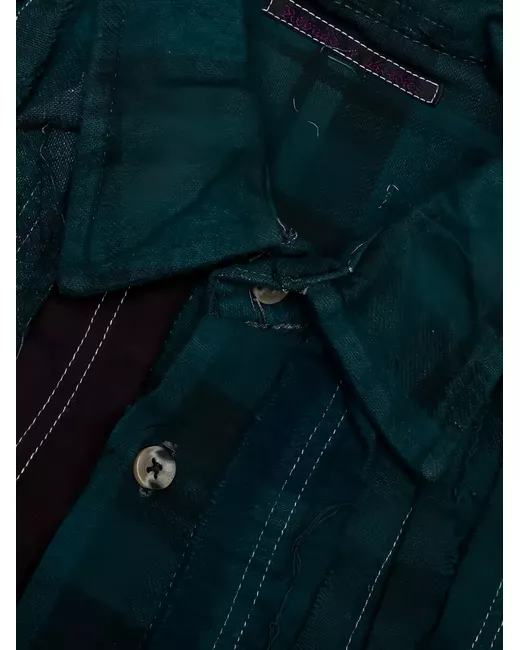 green ribbon detail plaid pattern button fastening long sleeves point collar