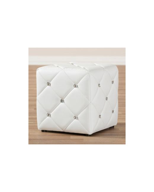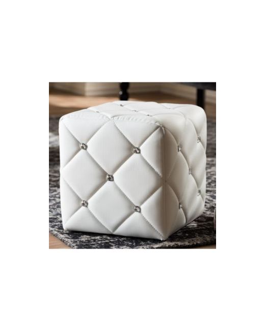 Add a glamorous touch to your home with this ottoman, ideal for when you need an extra seating option. The button-tufted diamond design is accented with faux crystals which add shimmer to the faux-leather upholstery.
