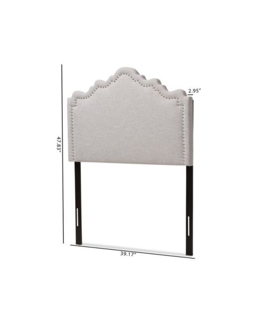Complete your bedroom with the charming beauty of this easy to install twin headboard. Silver-tone nailhead trim lines its graceful curved top, accentuating its elegant look while soft upholstery and plush padding offer comfort.