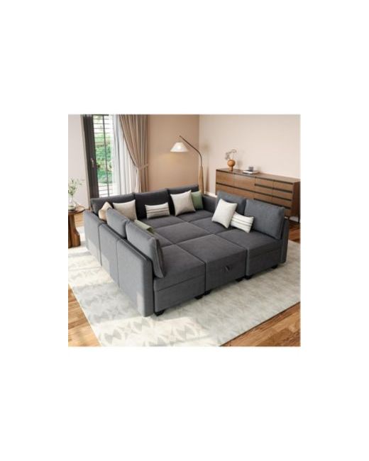 【Oversized Sleeper】 Not just an U shaped sofa but also an sleeper sofa, The modular sectional couch can meet your different needs and provide your guests with a great sleeping solution.Providing a comfortable sleeping surface for guests or family movie night and maximizing the space in your living room【Customizable to Your Space】 Tailor your seating arrangement to perfection with this modular sleeper sofa, offering infinite configurations to suit your space. With tree versatile modules, including single seat, ottoman, and armrests, the possibilities for customization are endless. This flexibility makes it an ideal choice for any room size or shape, allowing you to create your perfect seating arrangement【Incredibly Storage Seat】Every sofa seat has a hidden storage space(23.223.27inch) and it is large enough to put pillows, throws, clothes and toys.Easy way to keep your home clean and tidy with our modular sleeper【Surpportive Cushion and Safe Polyester Fabric】 The