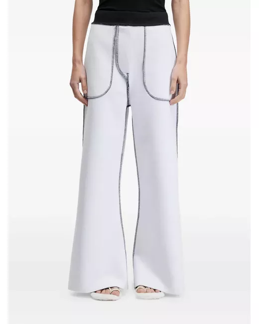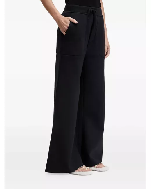 black wide leg drawstring fastening slip pockets fleece texture flared hem