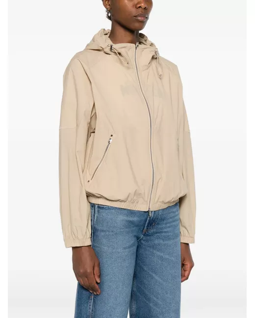 beige hood zip fastening elasticated hem elasticated cuffs welt pockets
