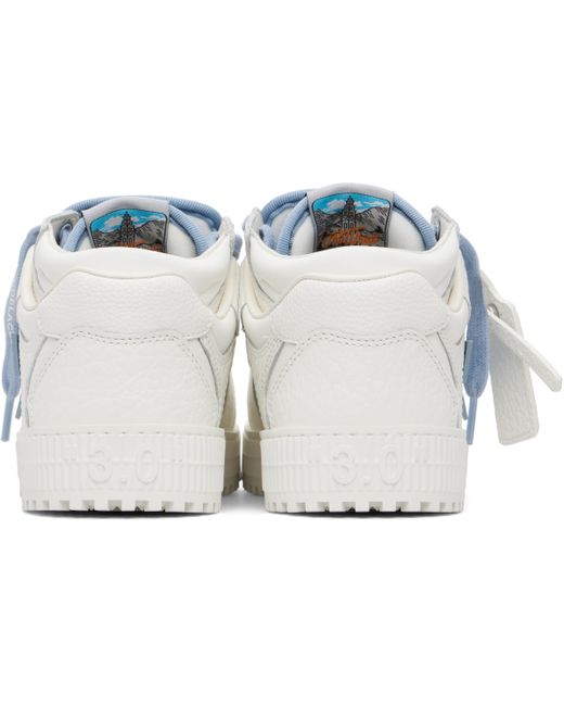Low-top grained leather sneakers. · Perforated detailing at toe · Signature zip-tie at lace-up closure · Layered padded tongue and collar · Logo patches at tongue · Signature arrow appliqué at outer side · Logo printed at heel tab · Mesh lining · Treaded rubber sole Supplier color: Ice/Vintage blue