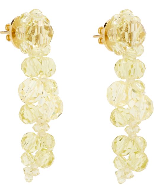 Pair of drop earrings in gold-tone brass. · Beaded glass in yellow at drop · Post-stud fastening · H2 x W0.5 Supplier color: Lemon