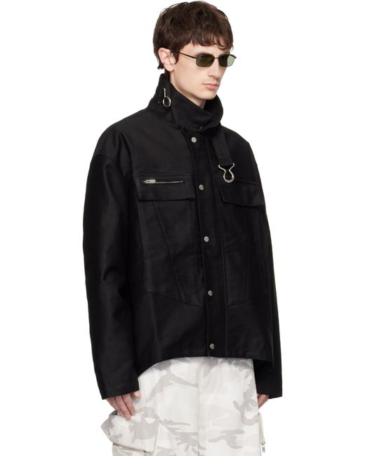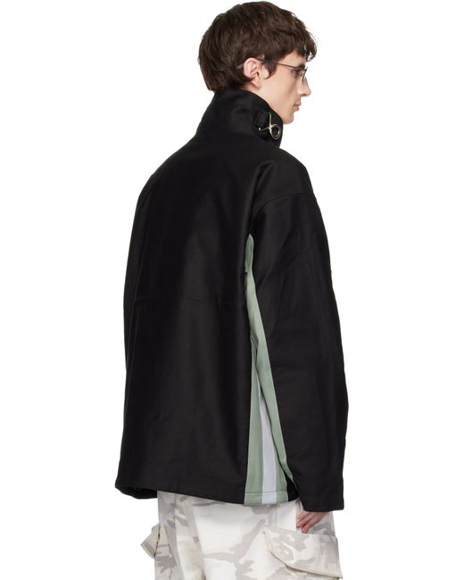 Hand-waxed cotton moleskin jacket. · Toggle tab at spread collar · Zip closure with press-stud placket · Flap pockets and zip pocket at chest · Reflective trim at side seams and sleeves · Press-stud fastening at cuffs · Drawstring at interior waist · Welt pockets at interior · Full taffeta lining Supplier color: Black