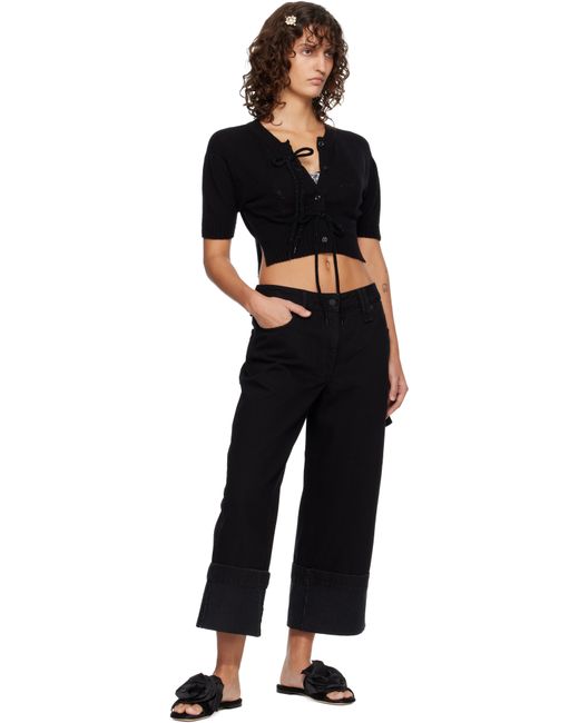 Non-stretch denim jeans. · Straight-leg · Belt loops · Five-pocket styling · Zip fly · Rolled cuffs · Hammer loop with bow at outseam · Leather logo patch with crystal-cut appliqué at back waistband Supplier color: Black