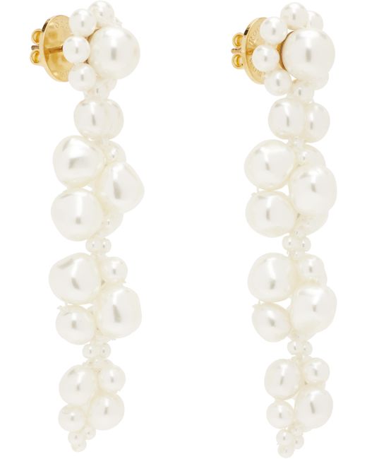 Pair of drop earrings in gold-tone brass. · Beaded faux-pearls in white at drop · Post-stud fastening · H2 x W0.5 Supplier color: Pearl