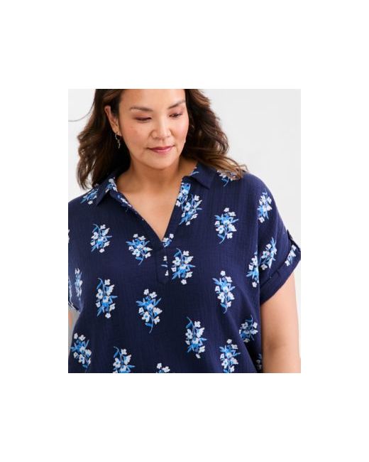 A collared neckline adds polish to a breezy silhouette with this plus size short-sleeve top from Style & Co.