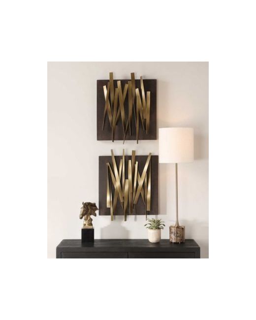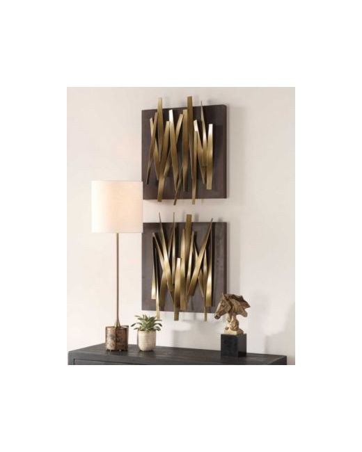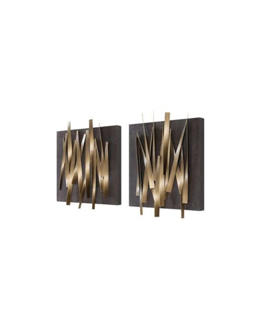 The Crosshatch panels bring contemporary flair with a fun three dimensional iron design finished in antique gold. Set on a naturally finished walnut veneer background.