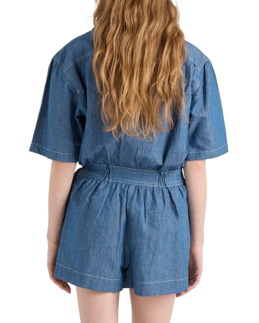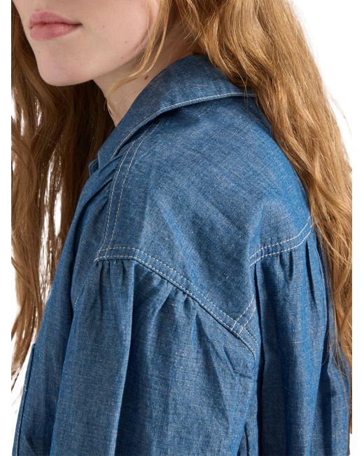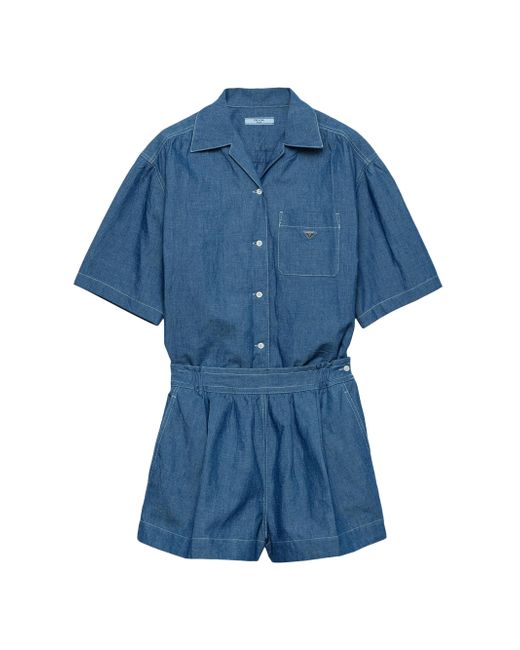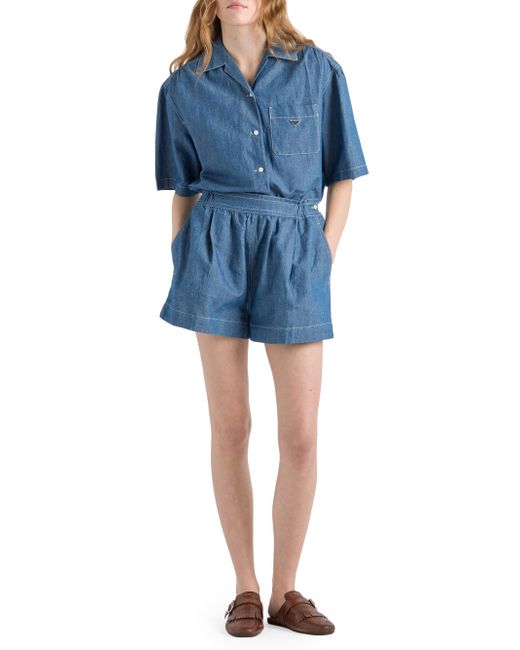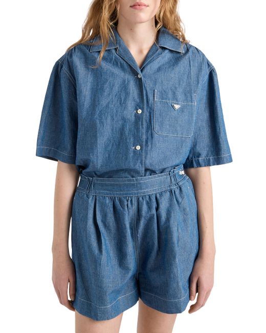 Washed treatment Boxy fit Bowling collar Front button closure Short sleeves Contrasting top-stitching Length from waist: 39.5 cm, Size: 38 Pressed garment 65% Cotton, 35% Flax - 100% Trochus Niloticus Imported. Lsd Rtw - Prada Rtw > Prada > Saks Fifth Avenue. Prada. Color: Blue. Size: 2.