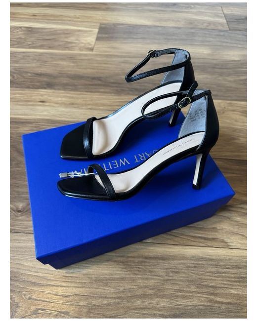 Minimalistic Calf Skin Leather Mid Heel: 75mm Open Square Toe Buckle Fastening Ankle Strap Rubber Sole Stuart Weitzman Icon