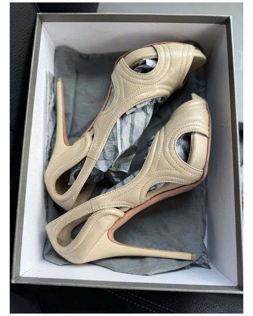 The Alexander McQueen Peep Toe Stiletto Heel in Beige is a stunning shoe perfect for parties or cocktails. Made of luxurious leather, this UK size 8 (EU 41) heel features a peep toe design and a stiletto heel, adding an elegant touch to any outfit. The beige colour and brand name by Alexander McQueen make this shoe a stylish and versatile choice for any woman's wardrobe. Whether you're looking to make a statement at a special occasion or simply want to elevate your everyday look, these heels are sure to impress. These include the original box, heel tip replacements, and the branded dust bag. The heels have general wear from being tried on in the shop by customers.