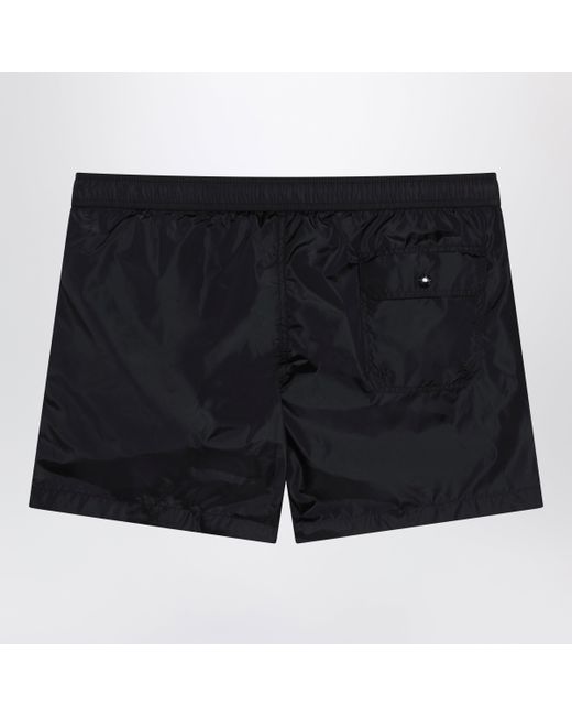 Swim shorts by Moncler in nylon• Color: Black• Elasticated waistband• Front closure with snap button• Two side pockets• One back pocket with flap and snap button• Contrasting side stripe