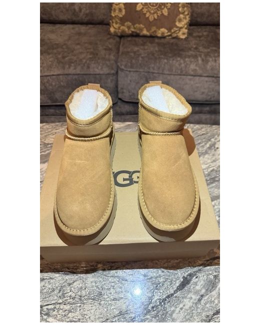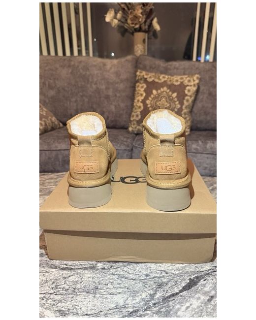 The UGG Classic Ultra Mini Platform Women's Boot in size UK 5 is a stylish and comfortable ankle boot designed for casual occasions. With a round toe shape and low heel height, these boots feature a suede upper material and a rubber outsole for durability. The brown colour and UGG logo accents add a touch of sophistication to this platform style boot from UGG Australia. Perfect for the winter season, these boots offer both fashion and comfort for everyday wear.