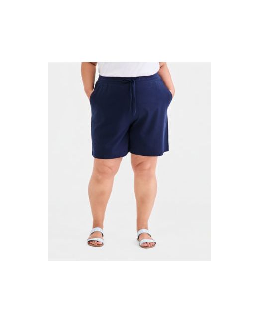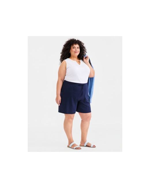 Casual and comfortable with a drawstring waist, these plus size knit shorts from Style & Co are designed in a versatile solid hue.