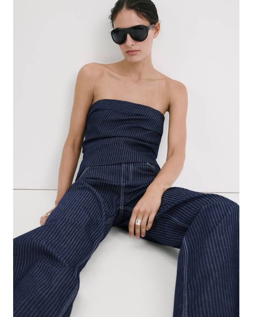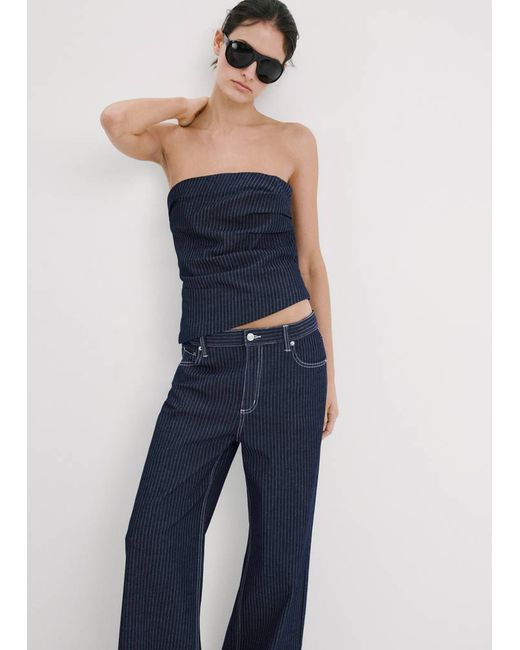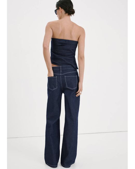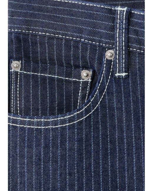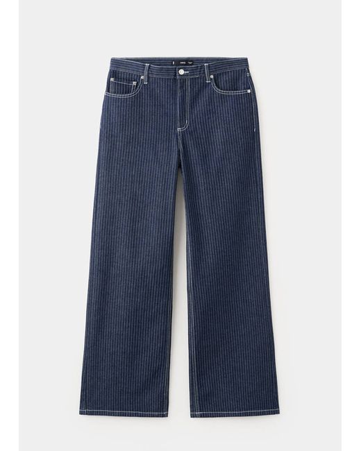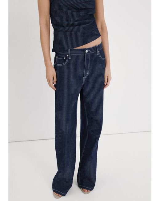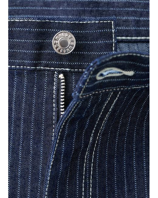 Denim-style cotton fabric, Straight design, Long design, Striped print, Mid-rise, Five pockets, Button and zip fastening, Total look