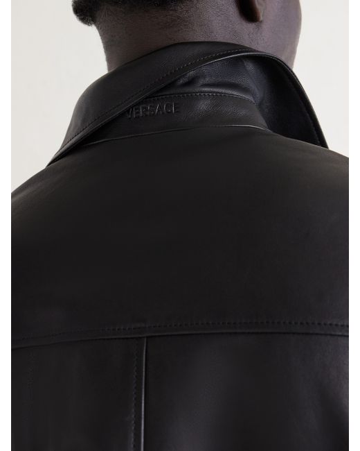 Versace’s leather jacket refines the classic blouson silhouette. Crafted in Italy from supple lambskin, it’s tailored with a point collar and a ribbed hem that subtly defines the shape.