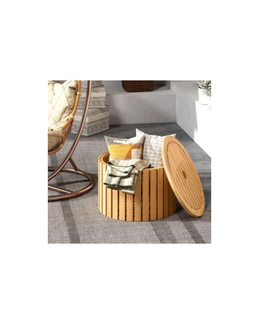Bring natural warmth and smart functionality to your outdoor space with this round acacia wood side table, thoughtfully designed for patios, porches, and garden seating areas. Crafted from durable acacia wood, it showcases rich grain details and a sturdy construction built for seasonal outdoor use. The smooth round tabletop provides convenient space for drinks, snacks, or decorative accents, while the hidden interior compartment offers discreet storage for small essentials, cushions, or outdoor accessories. Blending timeless wood appeal with practical design, this outdoor side table delivers both style and space-saving convenience for a well-organized and inviting setting.