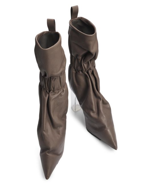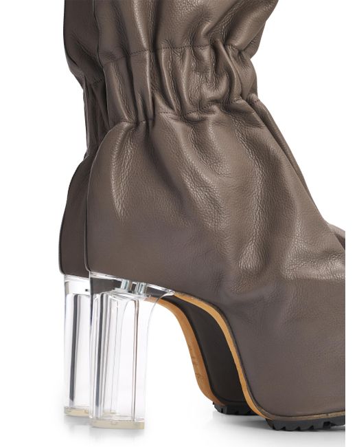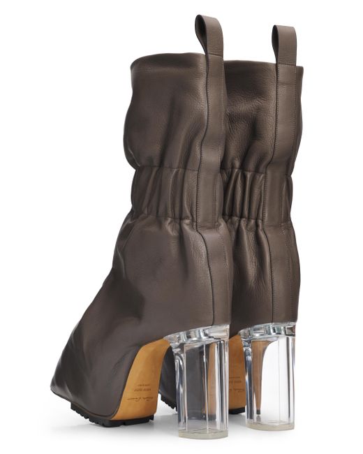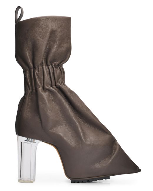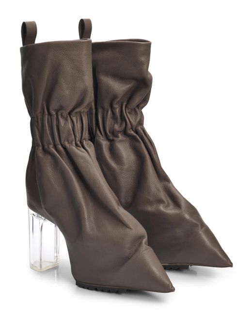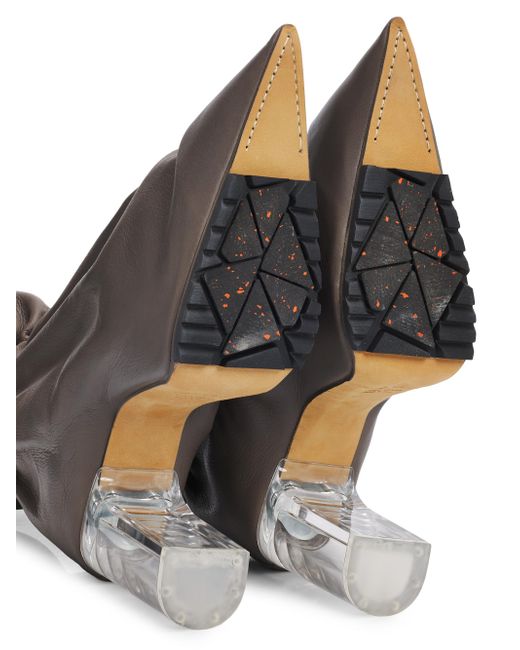 These Cuffed Taquito boots from Rick Owens are crafted of leather in an avant-garde point-toe silhouette set atop a clear block heel. Point toe Pulls on Leather upper Leather lining Leather insole Thermoplastic polyurethane sole Made in Italy. Women's Shoes - Designer W Shoes > Rick Owens > Saks Fifth Avenue. Rick Owens. Color: Dust Clear. Size: 7.
