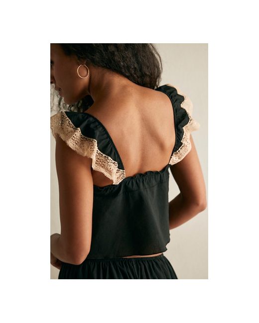 Endlessly sweet and ethereal, this soft cami from Only Hearts is crafted in a lightweight cotton, featuring vintage-inspired lace, lettuce trim, and fluttery sleeves for added flair. * Japanese cotton voile fabrication * Pull-on, cropped cami * Square neckline * Short ruffled sleeves Only Hearts Angel Cami at Free People in Kohl, Size: Small