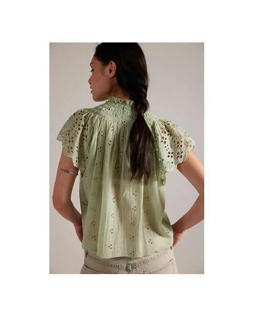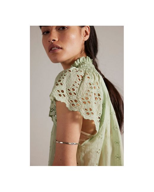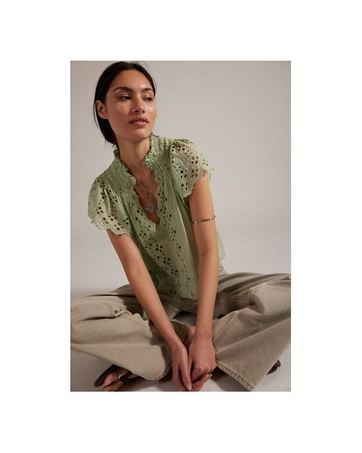 Airy and effortless, this blouse from our FP One collection features a dainty eyelet lace embroidery, a breezy cotton fabrication, and a billowy, relaxed silhouette for an ethereal feel. * Short sleeves * V-neckline * High-low hem * Ruched details FP One Sigrid Blouse at Free People in Mystic Spring, Size: XS