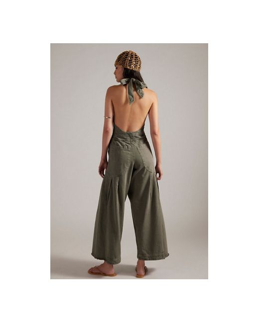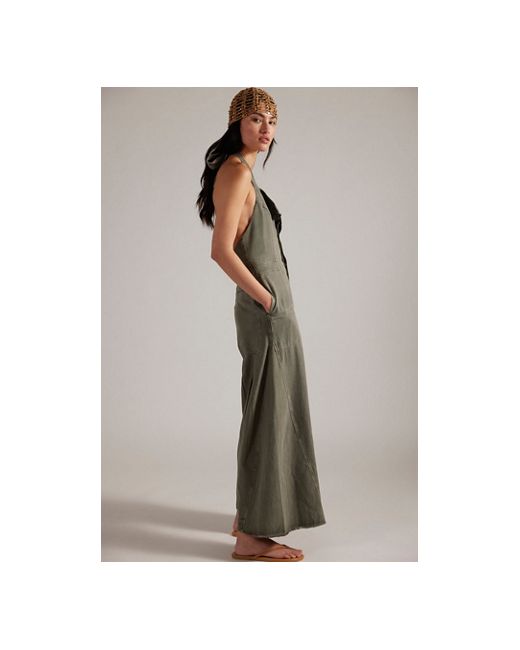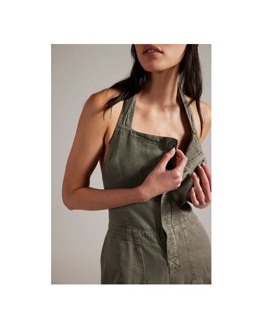 Not your average overalls-this cotton-twill pair featured a square, halter-style neckline and wide legs for the perfect twist on a classic silhouette. * Button-front closure * Front and back patch pockets * Pleats at back for volume * Raw hem Phoenix Solid Overalls at Free People in Dusty Olive, Size: XS