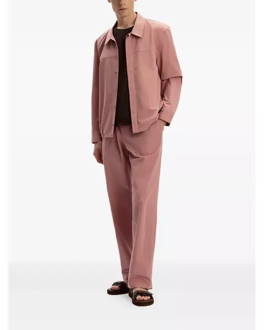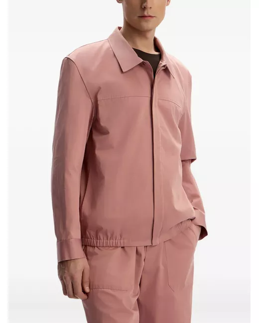 pink classic collar button fastening long sleeves elasticated hem cotton blend