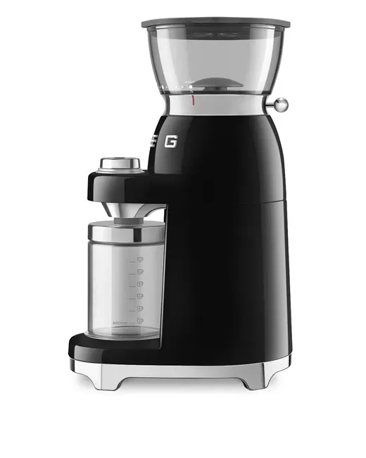 black multi-function grinding levels transparent container silver-tone detailing Compatible with all Smeg coffee machines. Schuko plug (officially known as Type F)
