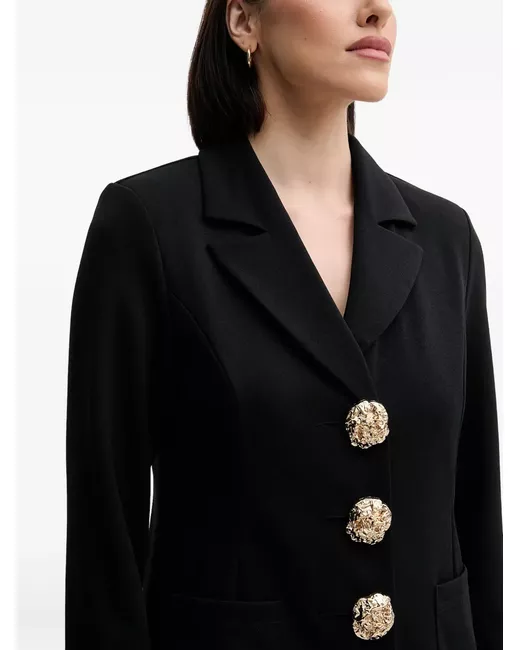 black gold-tone hardware V-neck button fastening long sleeves patch pockets