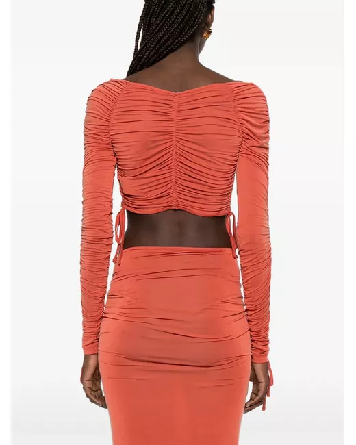 Ruched Long-Sleeve Stretch-Jersey Top Large