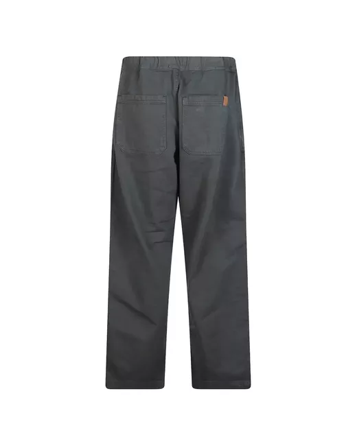 grey cotton elasticated drawstring waistband two rear patch pockets logo-debossed leather tag panelled knees