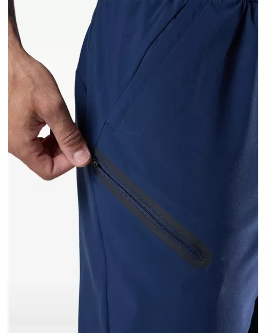dark navy elasticated waistband drawstring detail side zip pocket panelled design logo detail